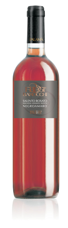Fregi Barocchi IGT 2012CHF 10.00 – 7.5dlNegroamaro Salento Rosato. Traubensorte: 100% Negroamaro. Gärung: Im Stahltank. Die Reben werden im Spalier gepflanzt. Die Farbe Rosa, leuchtend, der Duft fruchtig, der Geschmack frisch und trocken. Servieren: 12-14°C. Verkaufseinheit: 12 Flaschen.